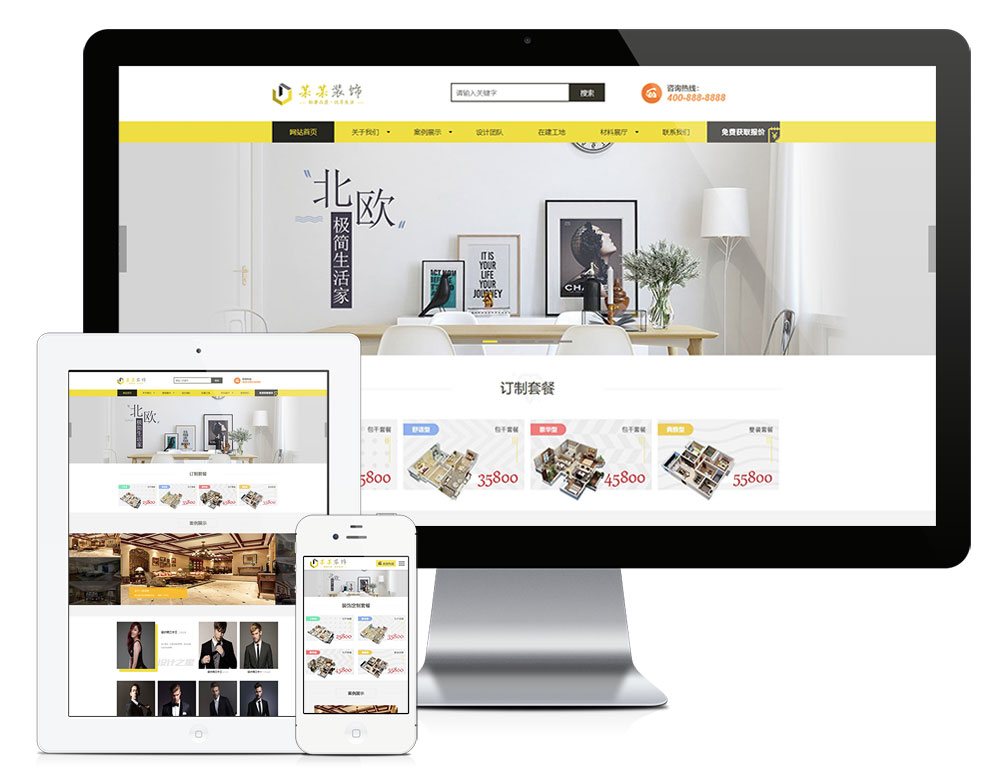 - 模板带有装修案例展示,可添加多种筛选分类,设计师发布可关联该设计师的所有案例,客户前台提交装修需求,后台提示并可查看信息,以便回访客户,在线工地进程展示图等功能。