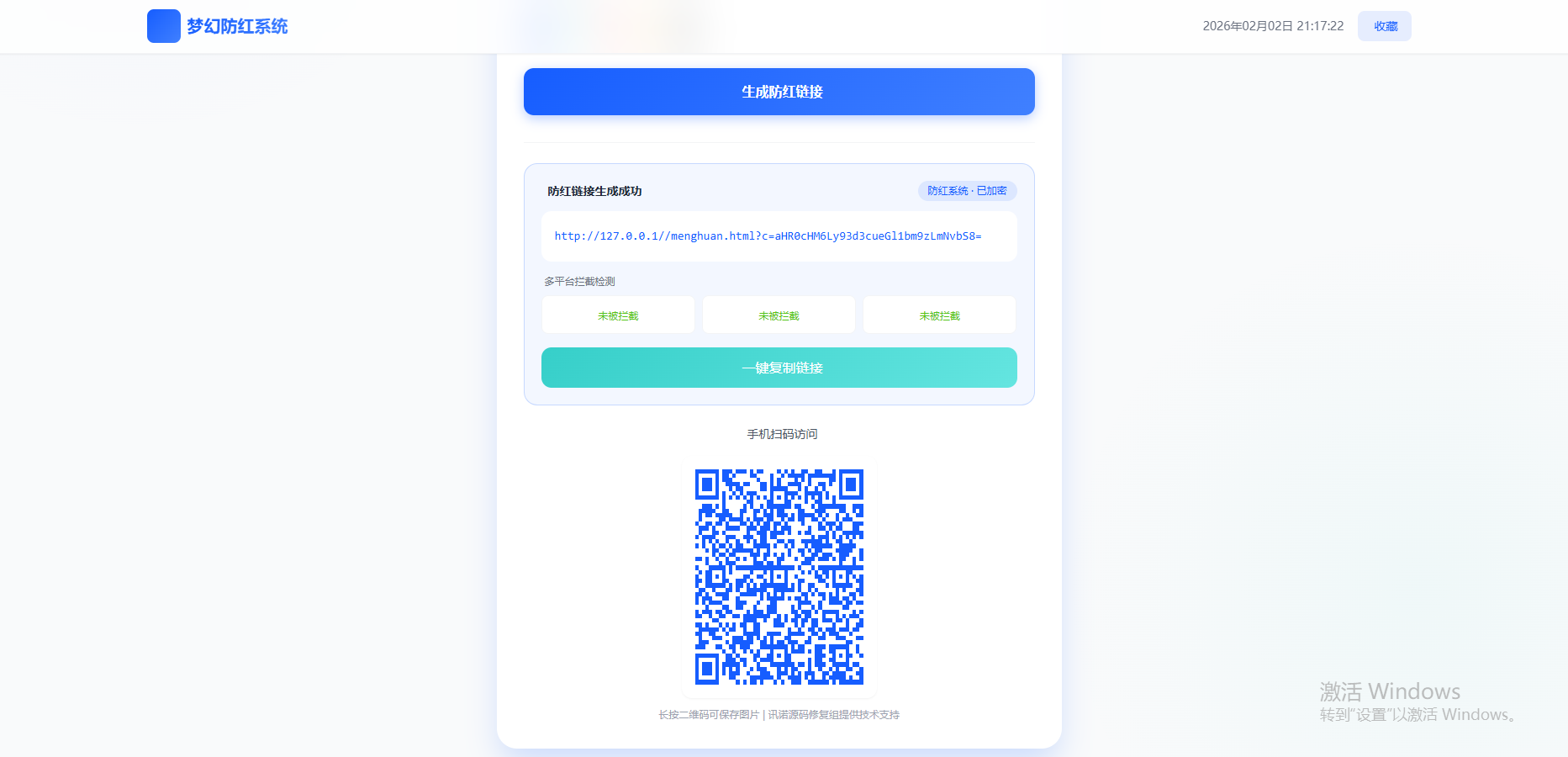 - 二维码生成 :为生成的防红链接创建二维码,方便移动端扫描