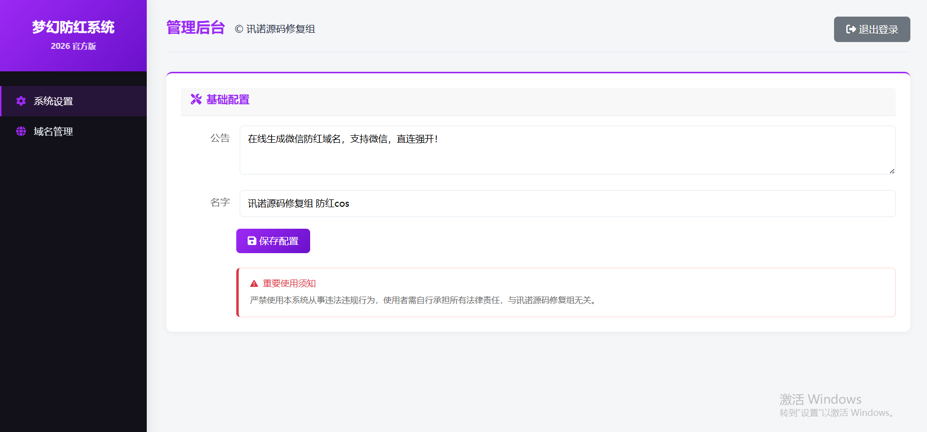 - 域名管理 :支持添加和管理多个防红域名(支持HTTP/HTTPS)