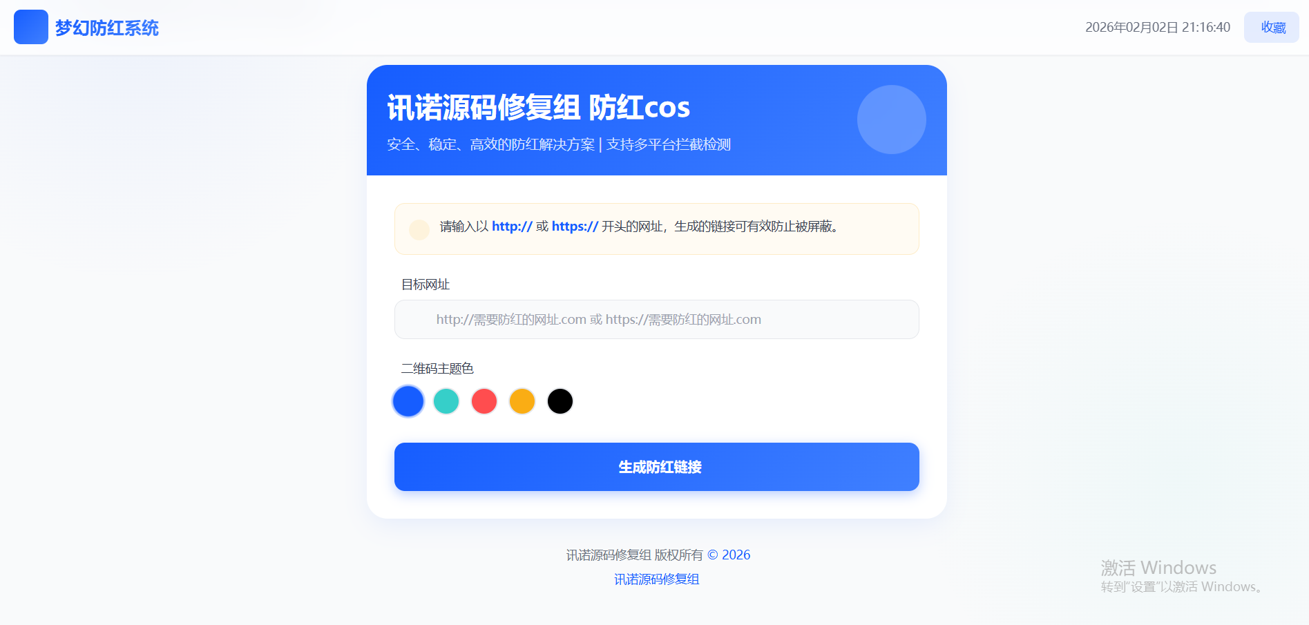 项目总结 :梦幻防红系统(已更改为讯诺源码修复组)是一个功能完整、安全可靠的防红链接生成工具。它使用现代的技术栈,提供了用户友好的界面和完整的功能。系统已经修复了主要安全漏洞,安全性得到了保障。