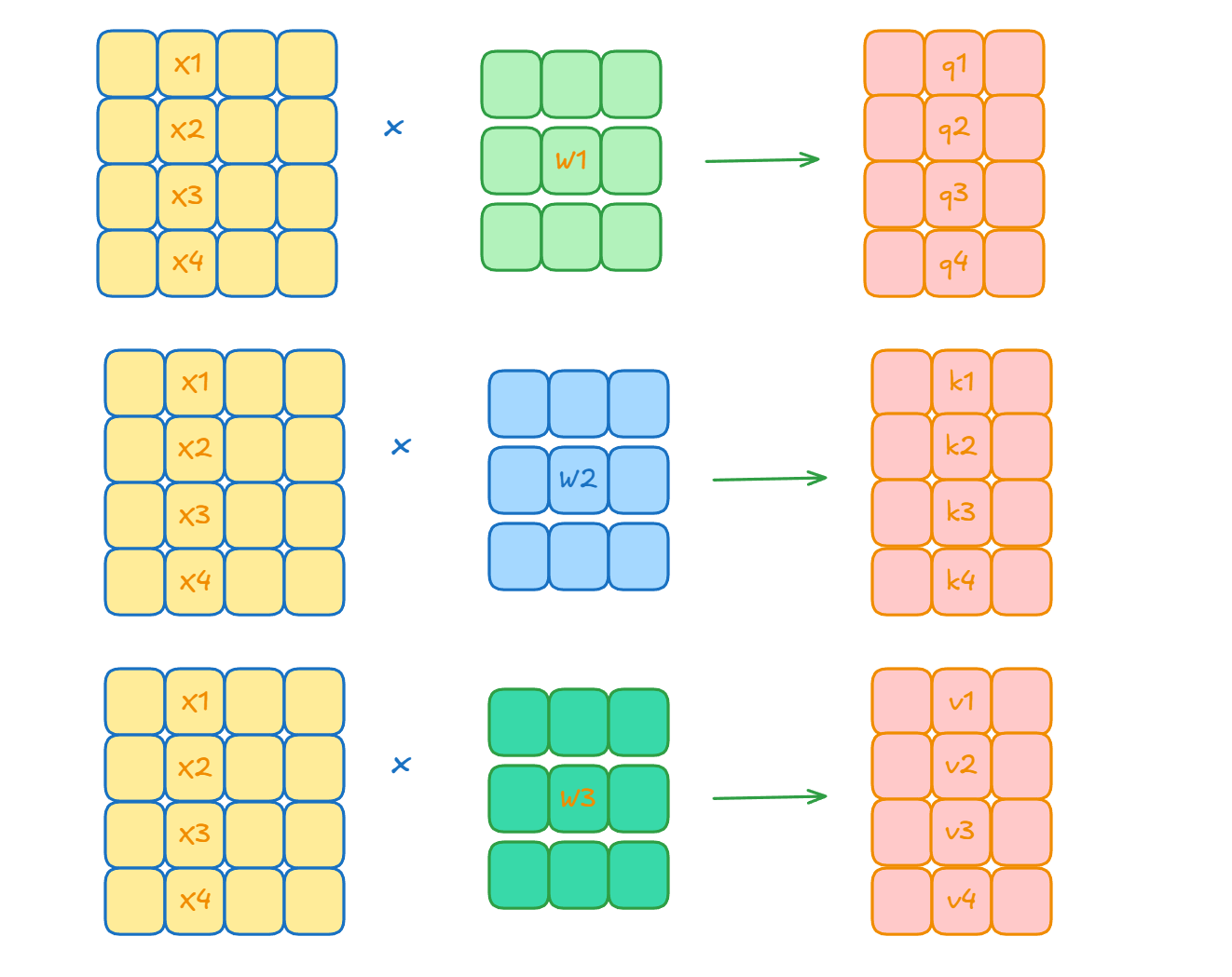 其中w1 w2 w3都是可学习的参数矩阵