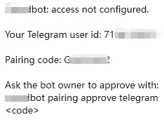 6.配置完成后,在 Telegram 中进入该机器人的聊天页面,发送 /start 指令。机器人将返回一个 pairing code。