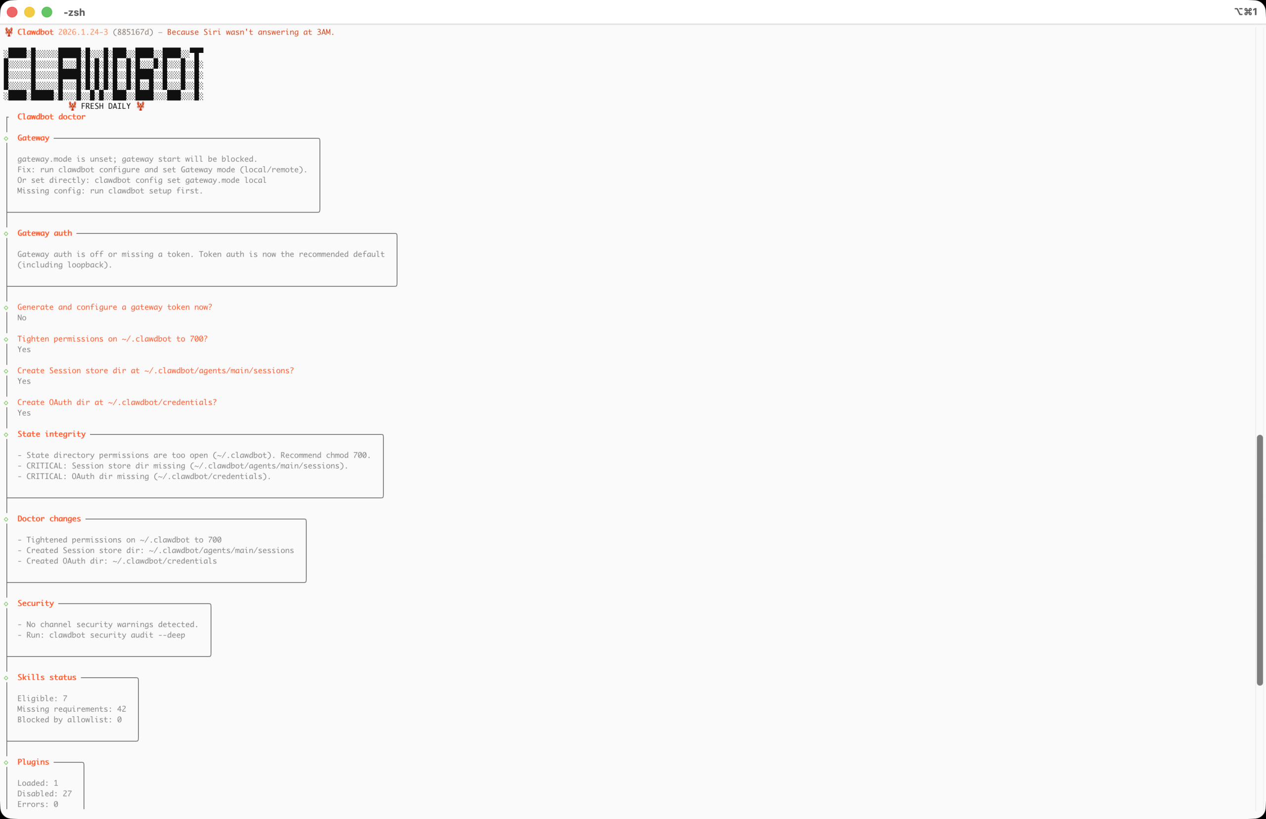 脚本跑完,会看到如下的 clawdbot onboarding 指引,说明安装成功了👇🏻。