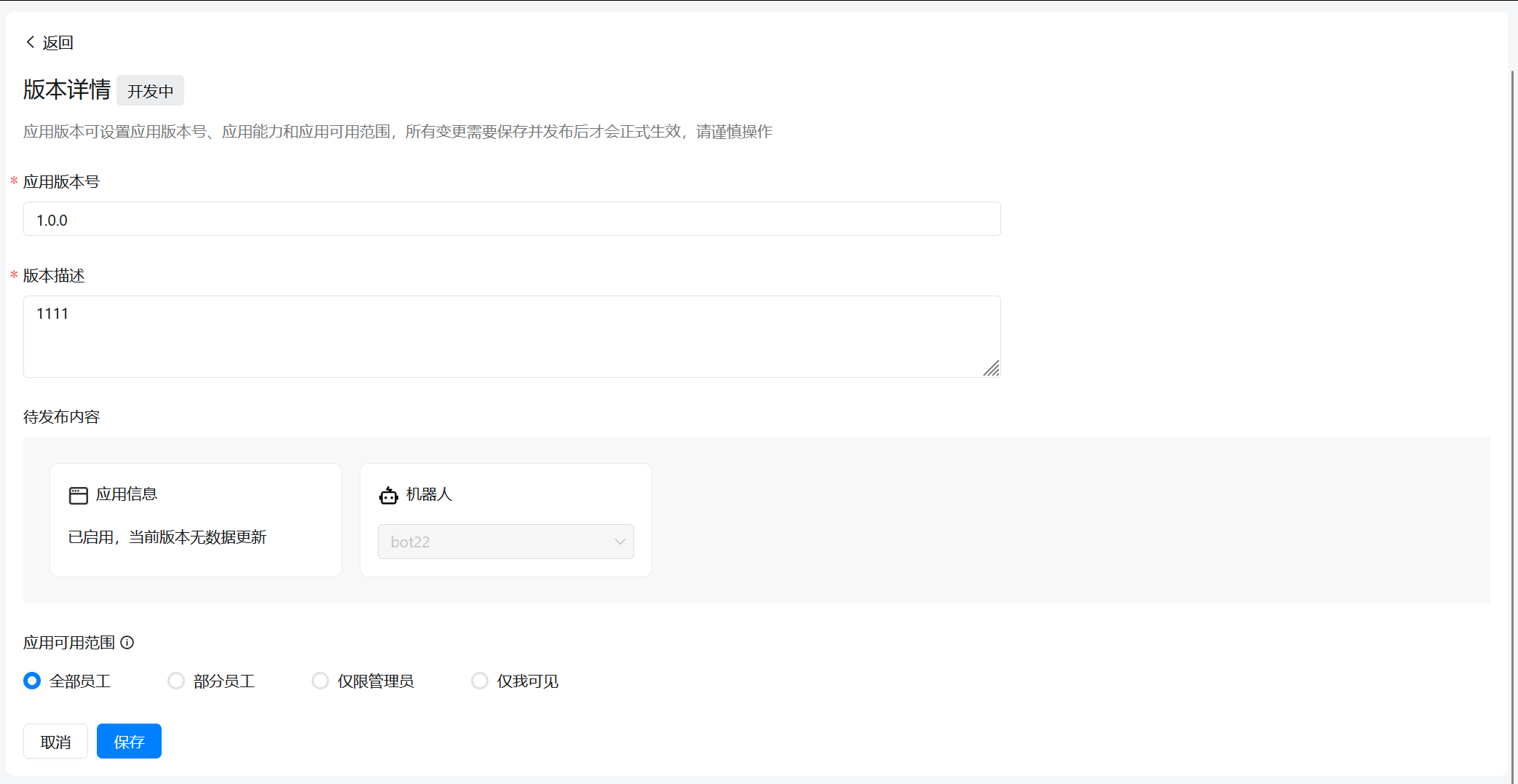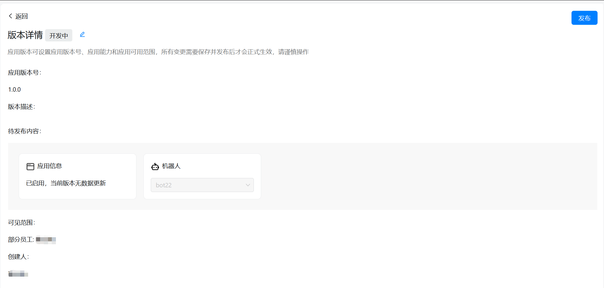 之后点击版本详情旁边的小铅笔按钮编辑版本信息以及可见范围