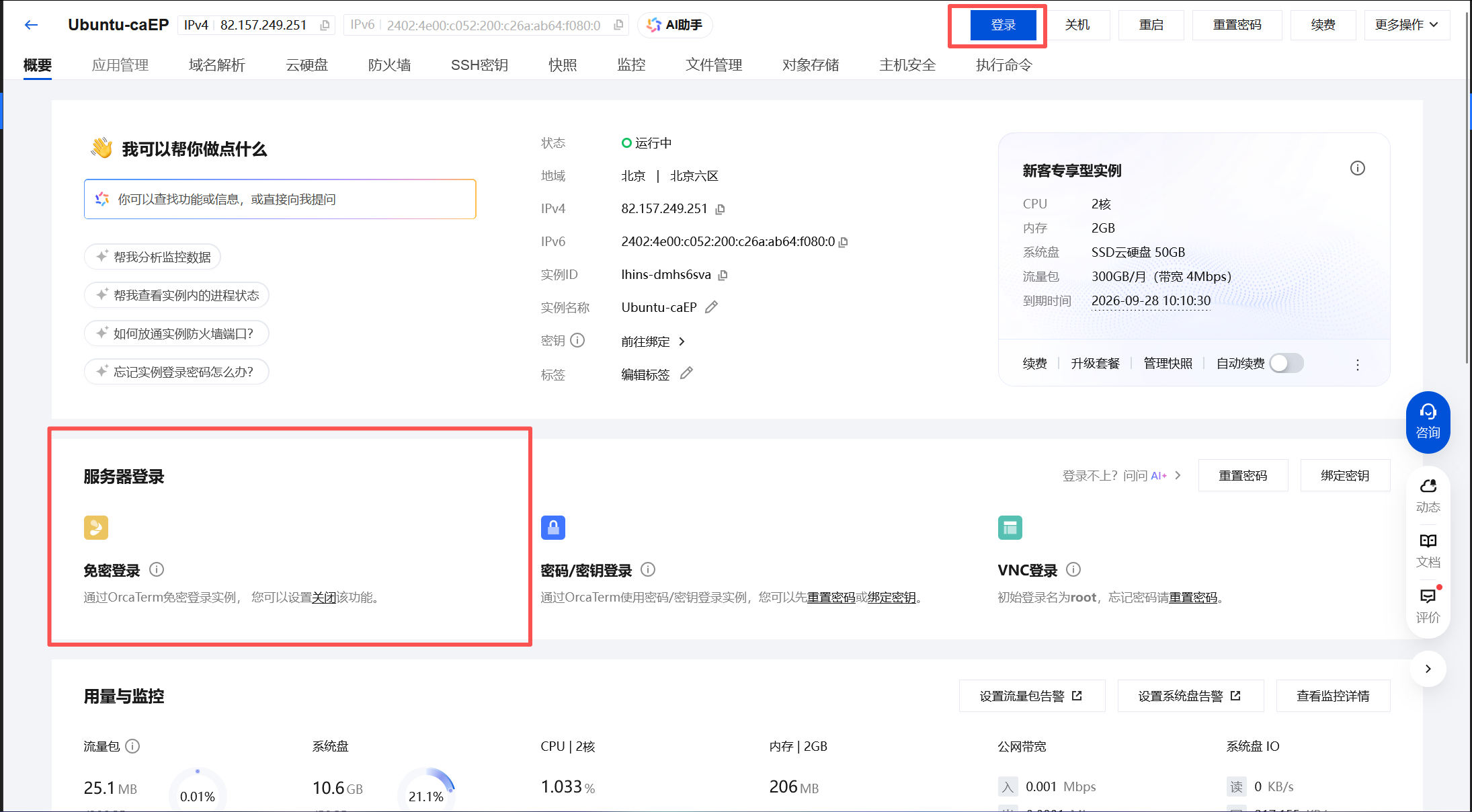进入控制台后点击登录右上角的登录或者点击屏幕左侧的免密登录