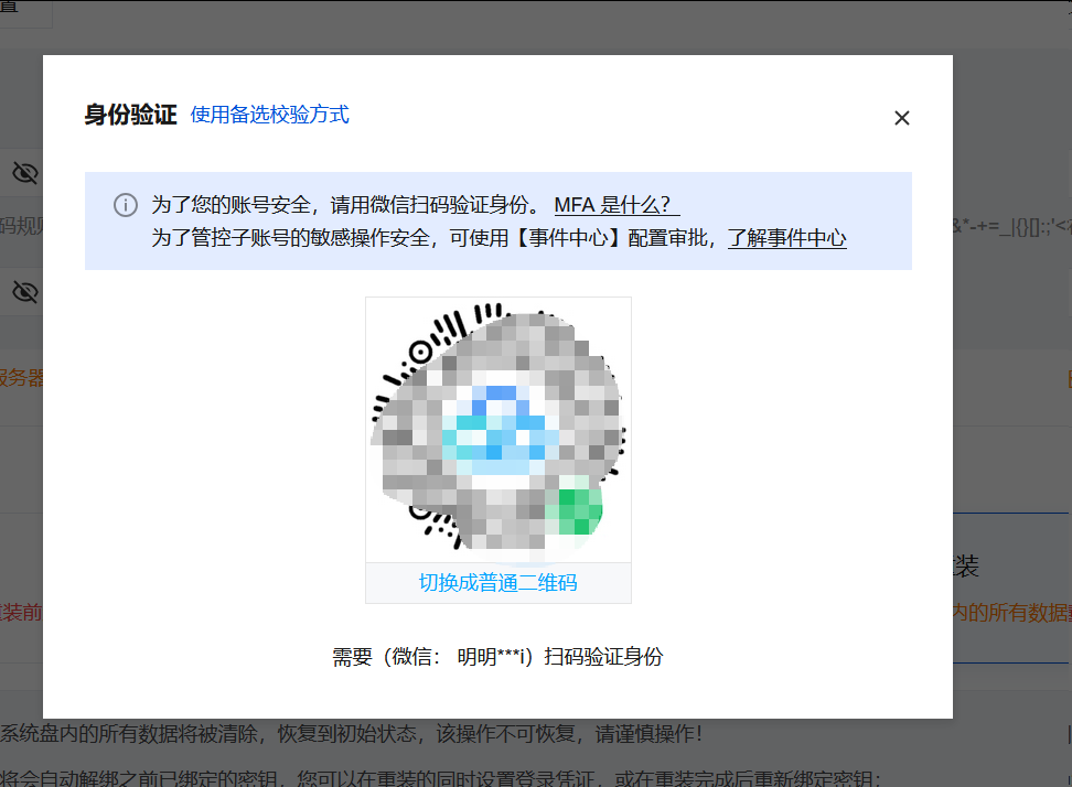 确定后拿出手机扫码(每个人的身份验证不一样,看自己的提示)