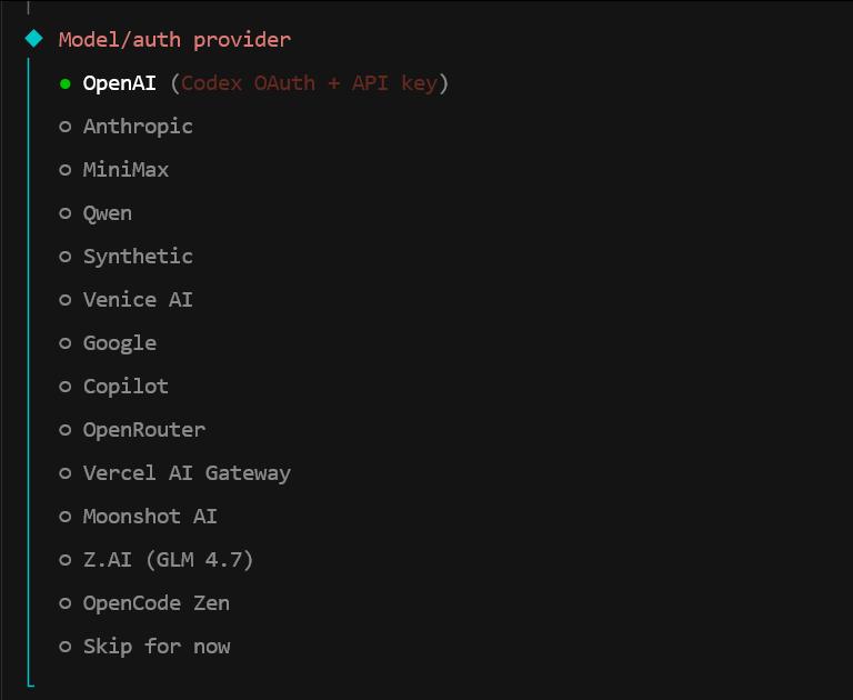 Onboarding mode 选择QuickStart (默认回车确认就行)