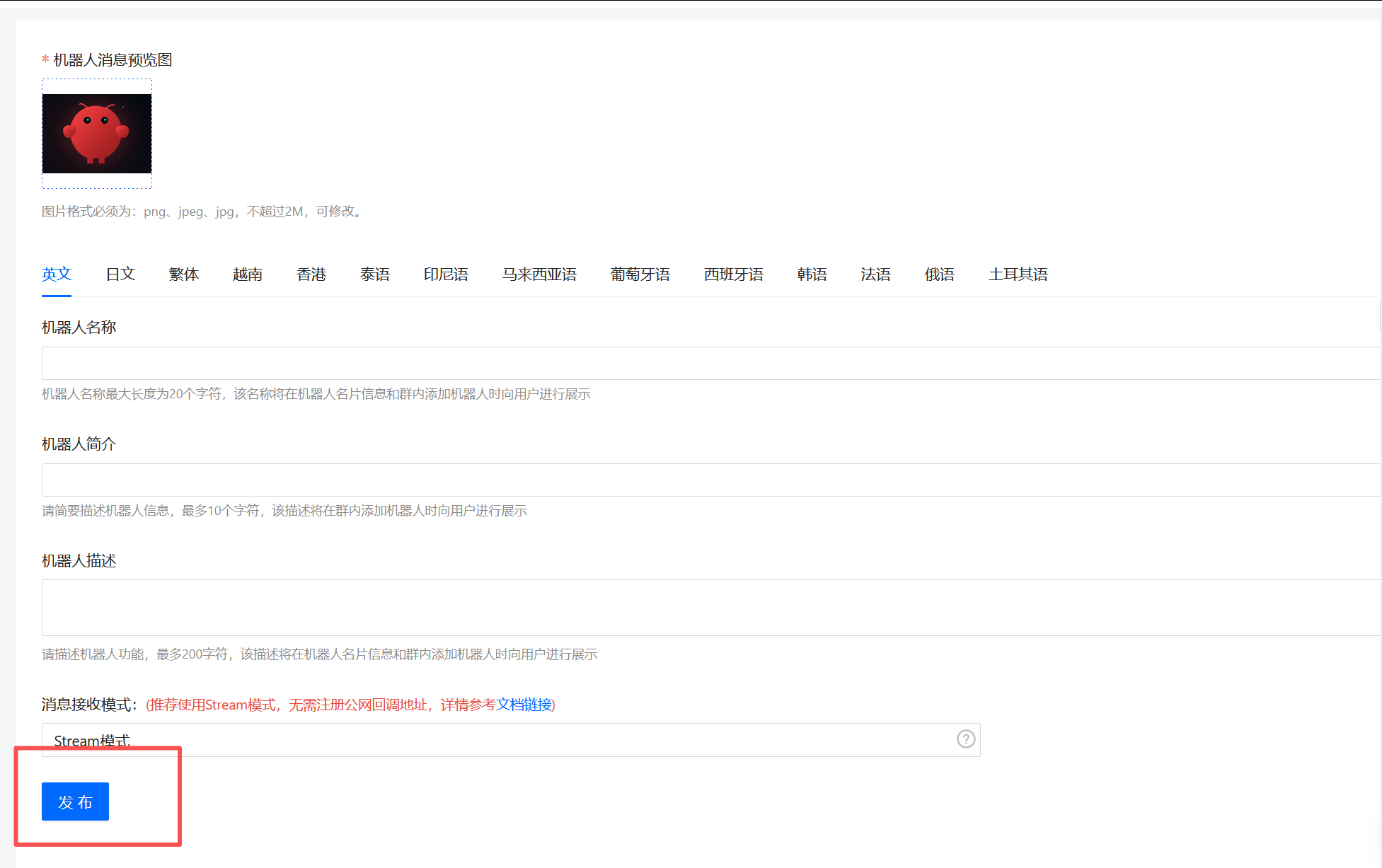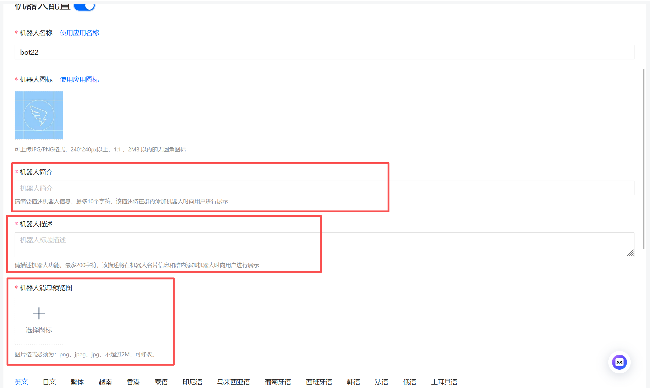 完成机器人简介 描述 消息预览图相关内容(机器人简介 描述 预览图后期都可以改)
