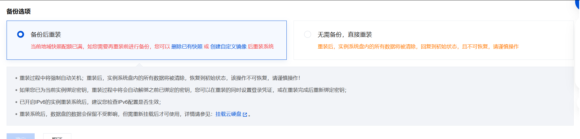 备份选项:自行选择(备份后重装和无需备份重装不一样,一个会备份后重装 一个是不备份直接重装 注意区分!)