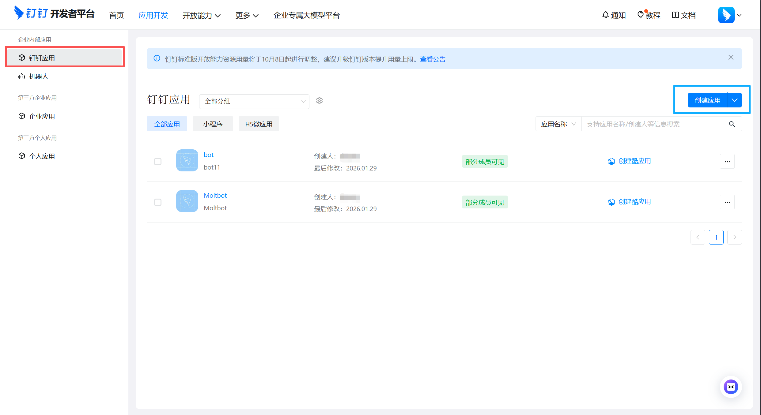 到此 钉钉开发者平台配置完毕 咱们回到Moltbot配置中