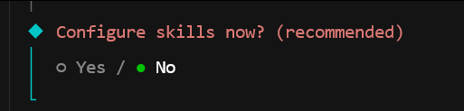 Configure skills now? (recommended)选择中可以不选也可以选择,教程中不选择(如果有想折腾的小伙伴可以选择技能)