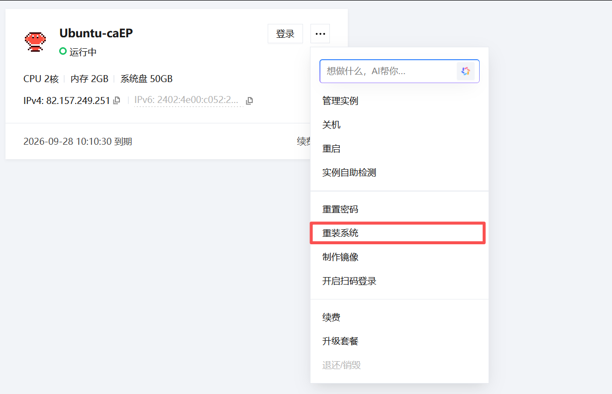 结束后会自动重定向腾讯云轻量控制台(如未自动重定向请手动点击链接):https://console.cloud.tencent.com/lighthouse/instance
