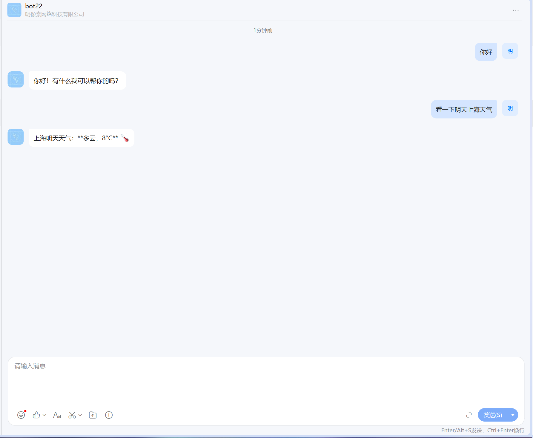这样就代表运行成功了,之后打开钉钉 搜索咱们添加的机器人