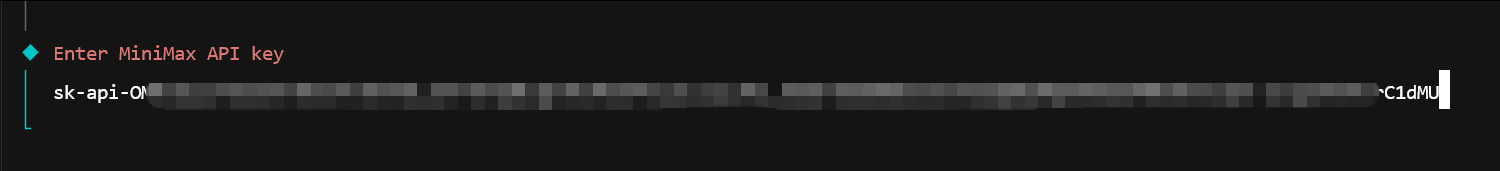 文章中选择为MiniMax M2.1模型 回车后粘贴API Key