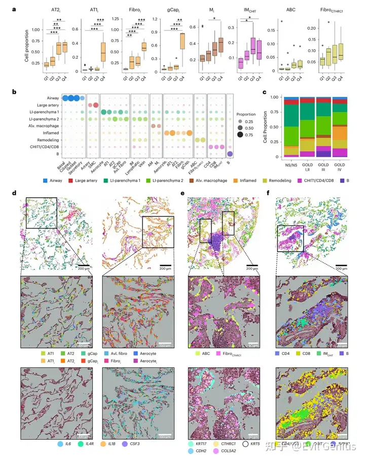 IM在COPD中整体增多,主要由促纤维化亚群IMCHIT1驱动,其富集程度与疾病严重程度正相关,并通过免疫荧光染色验证