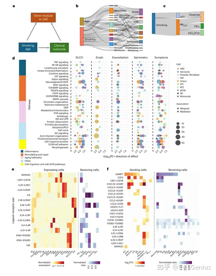 细胞状态丰度的中介分析显示,IMCHIT1巨噬细胞介导了吸烟对呼吸困难、FEV1和FEV1/FVC的负面影响,而AT1细胞则对呼吸困难具有保护作用。