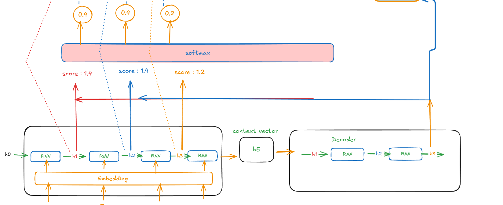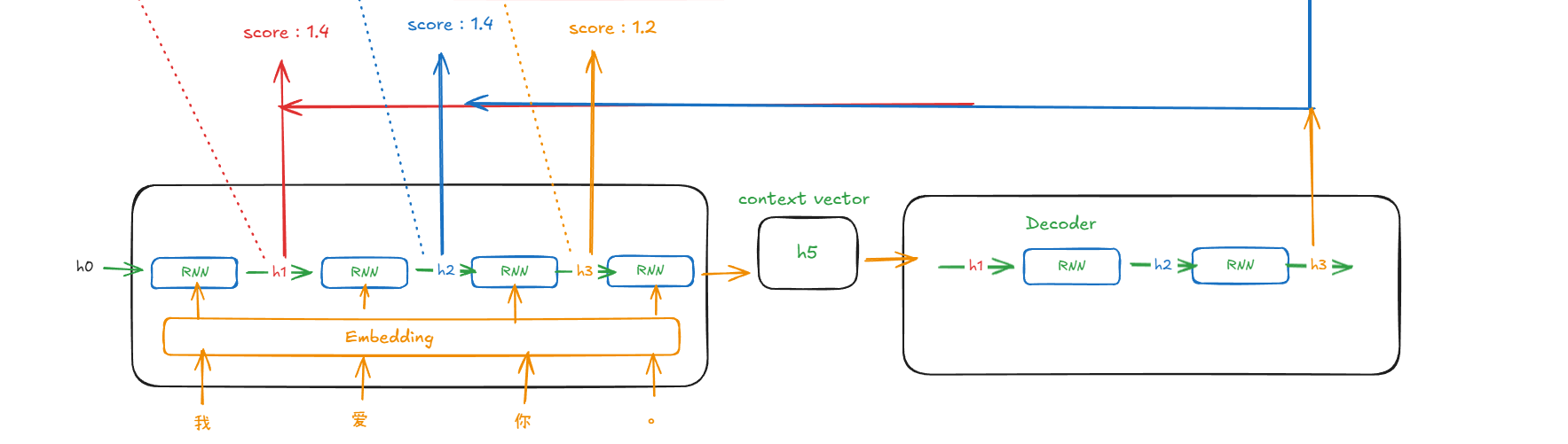 - 最后,它将所有源语词的信息,按照这个动态计算的权重进行加权融合,生成一个全新的、每一步都不同的上下文向量,用来指导当前词的生成。