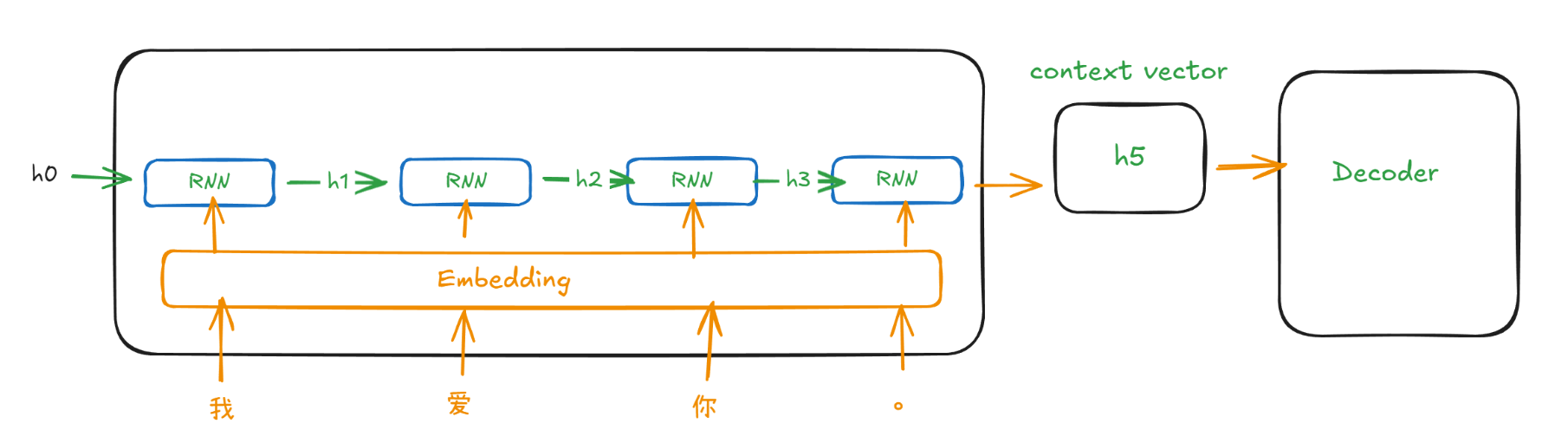 - 第一步(编码):无论你给他一本厚厚的菜谱(长句子),还是短短一句秘诀(短句子),他都只会把所有内容猛火快炒,浓缩成一勺固定的“精华浓汤”(即固定长度的上下文向量)。