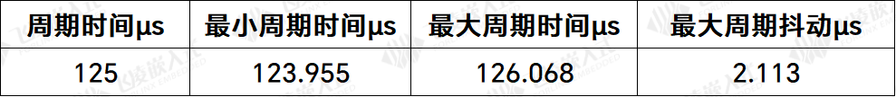 以上测试对未及时收回来的数据帧时统计的周期样本进行剔除,在跑125μs周期,帧未及时收回来的情况会更加频繁。