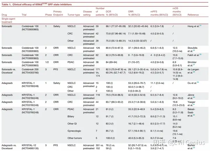 疗效数据:在转移性结直肠癌中,KRAS G12C“关闭”状态抑制剂的单药疗效显著低于非小细胞肺癌。