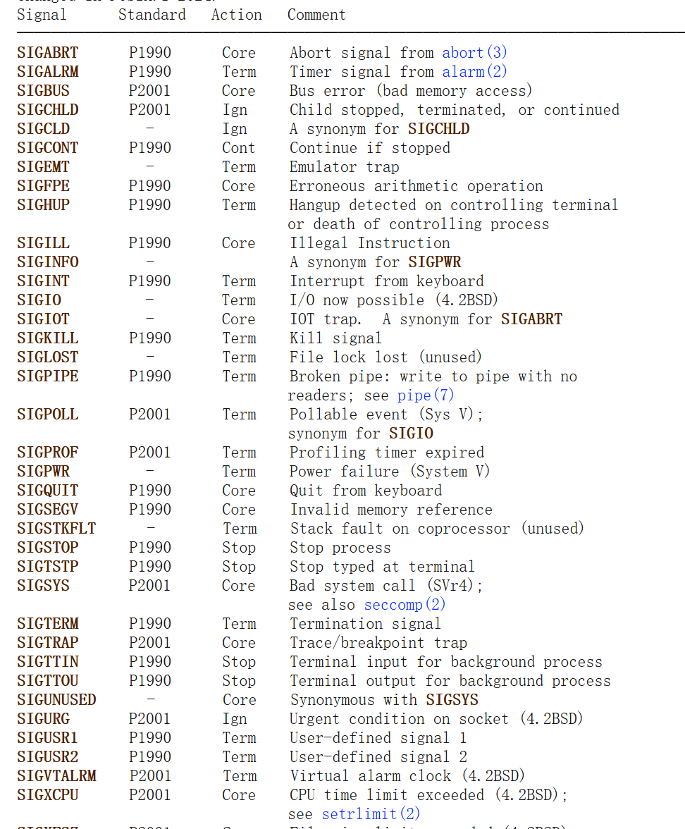 如果对信号量感兴趣,可以看下https://www.man7.org/linux/man-pages/man7/signal.7.html, 太TM多了