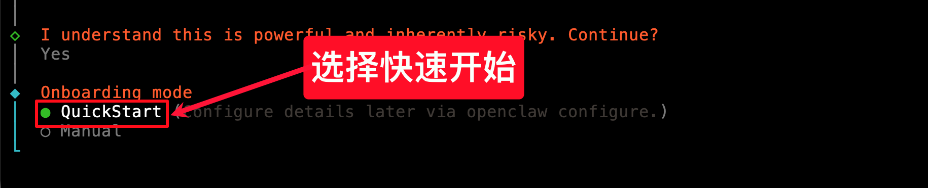 稍等片刻,Gateway 服务安装完成,开始选择启动机器人的方式: