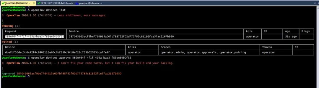 openclaw devices approve 589e464f-4f1f-495a-bae3-f83ee64b0f52